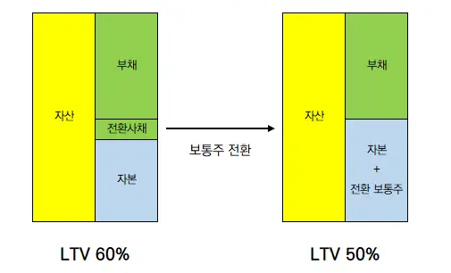 <전환사채의 보통주 전환에 따른 부채비율 개선 효과 예시>