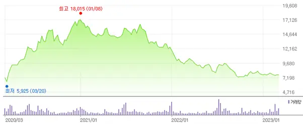 [2020~2023년 국내 바이오 섹터 ETF 가격 추이]